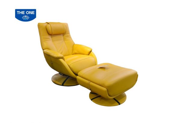 Ghế thư giãn bọc da thật bề mặt tiếp xúc người sử dụng, ghế gồm 2 phần (ghế + đôn) có chức năng ngả và đàn hồi. Phần ghế có thể xoay 360 độ.