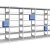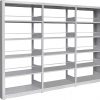 Giá thư viện 4 khoang sử dụng 2 mặt, có 5 tầng để tài liệu. Các đợt và thanh chắn có thể di động giúp điều chỉnh độ cao.