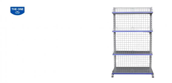 Giá siêu thị để hàng 1 mặt khung thép sơn tĩnh điện, có 4 tầng để đồ (gồm đáy và đợt).