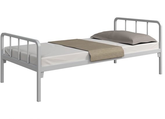 Giường đơn khung thép sơn tĩnh điện, giát giường gỗ công nghiệp.