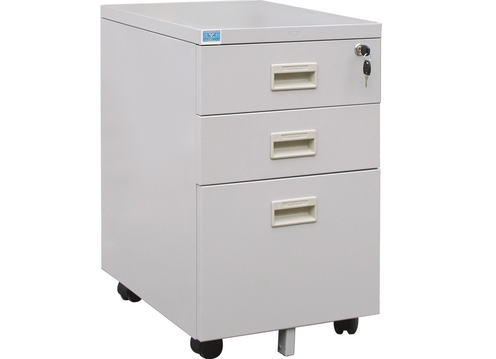 Hộc sắt di động sơn tĩnh điện, có 3 ngăn kéo sử dụng cơ cấu ray bi (2 ngăn nhỏ, 1 ngăn lớn) và dùng khóa dàn.