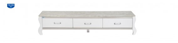 Kệ tivi khung gỗ tự nhiên sơn High glossy cao cấp màu trắng, kết hợp mặt đá nhân tạo.