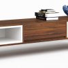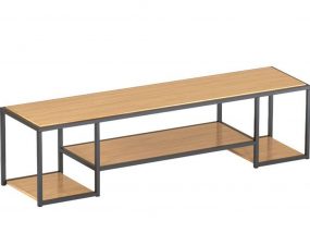 Kệ tivi khung thép sơn đen nhám kết hợp mặt bàn và đợt để đồ bằng gỗ công nghiệp dán giấy vân gỗ.