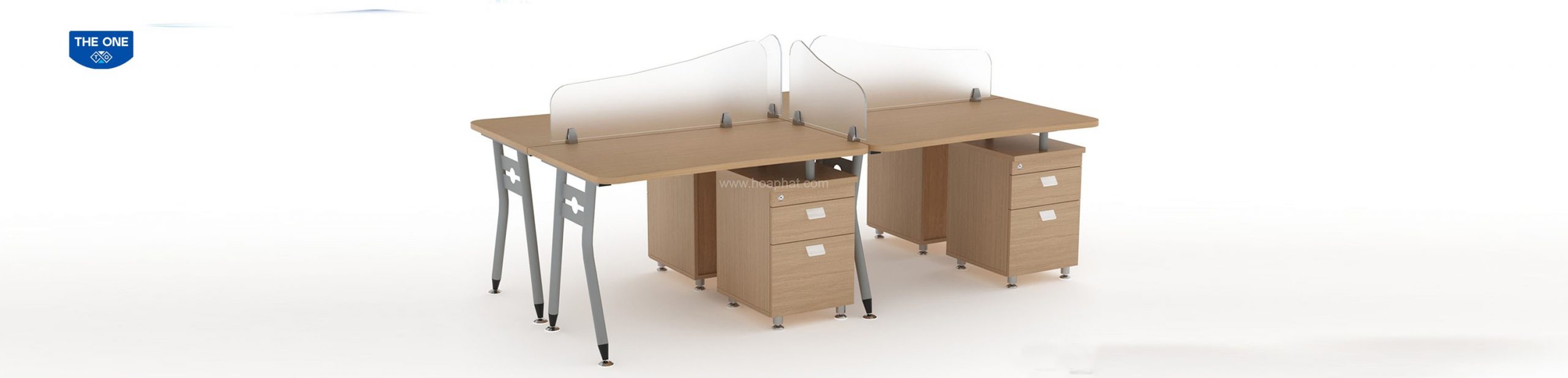 Module làm việc 4 chỗ, mặt bàn chữ nhật sử dụng chân sắt C1 và có vách ngăn kính.