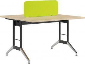Modul làm việc 2 chỗ cao cấp mặt gỗ meleamin, kết hợp chân bàn ống thép sơn đen và mạ. Bàn có máng điện kết hợp làm khung giằng với kết cấu chắc chắn và tiện ích khi sử dụng, đã bao gồm 1 vách ngăn VN06