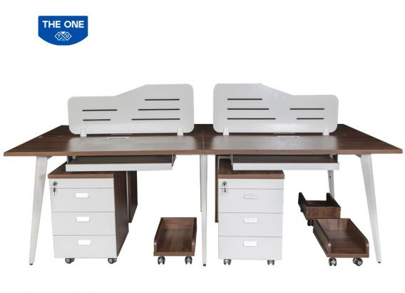 Modul làm việc 4 chỗ ngồi, sử dụng khung thép sơn tĩnh điện kết hợp mặt Melamine cao cấp.
