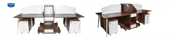 Modul làm việc Luxury 4 chỗ ngồi, sử dụng khung thép sơn tĩnh điện kết hợp mặt Melamine cao cấp.