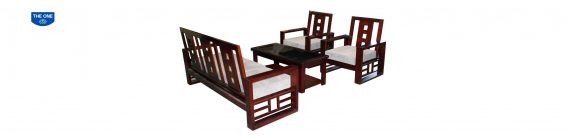 Bộ bàn ghế sofa gỗ tự nhiên được sơn phủ Pu, gồm 02 ghế đơn, 01 ghế băng ba chỗ và 01 bàn.