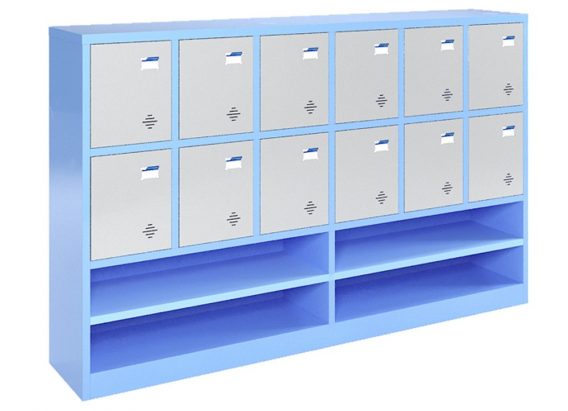 Tủ sắt sơn tĩnh điện có 12 cánh mở phía trên, phía dưới có ngăn trống để giày dép