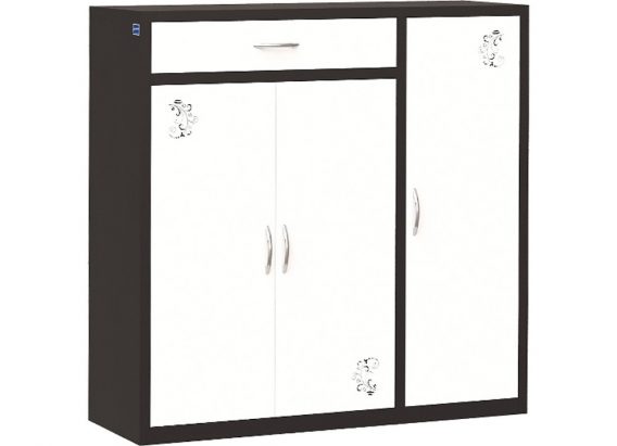 Tủ để giày bằng sắt gồm 2 khoang cánh mở và 1 ngăn kéo.