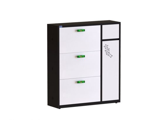 Tủ đề giày bằng thép sơn tĩnh điện màu cafe, kết hợp màu trắng có hoa văn trang trí cắt laser.