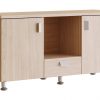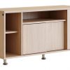 Tủ phụ di động gỗ công nghiệp, có khoang giữa sử dụng 2 cánh lùa và khoang ngoài có 1 cánh mở.
