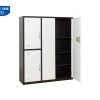 Tủ sắt an toàn sử dụng thép dày sơn tĩnh điện màu cà phê-trắng. Tủ gồm 2 khoang, mỗi khoang có 2 đợt di động.