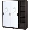 Tủ sắt gia đình 2 cánh lùa thân sơn màu cà phê kết hợp cánh mầu trắng có hoa văn trang trí hiện đại.