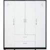 Tủ gồm 3 cánh mở và 2 ngăn kéo. Khoang phải có 2 đợt di động và 1 suốt treo áo, khoang trái và giữa có 1 đợt cố định, 1 đợt di động và 2 suốt treo áo, sau cánh giữa có 1 tấm gương.