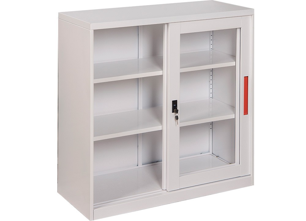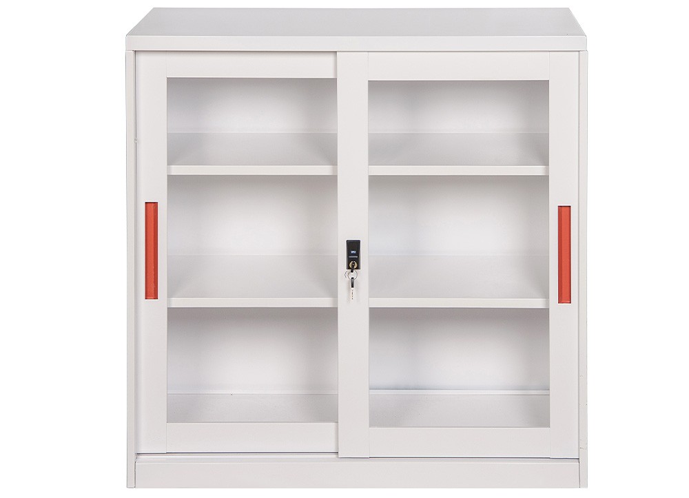 Tủ sắt sơn tĩnh điện màu trắng, tay nắm âm màu cam