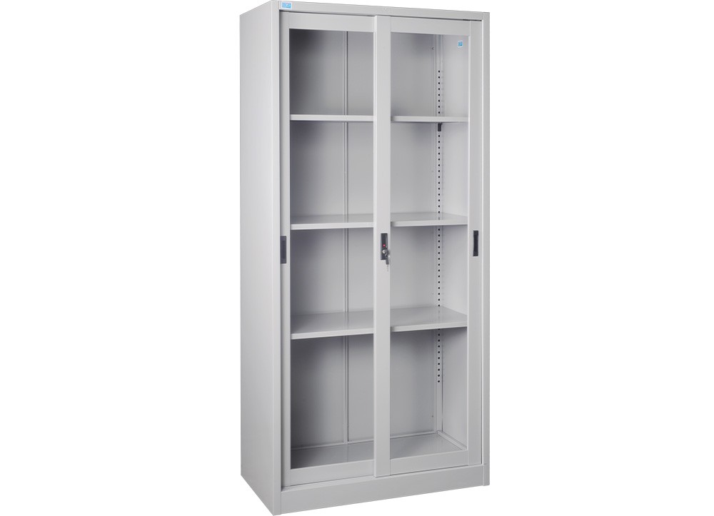 Tủ sắt sơn tĩnh điện 1 khoang, sử dụng cánh kính lùa khung thép và có 3 đợt di động.