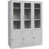 Tủ sắt sơn tĩnh điện gồm 3 khoang: 1 khoang cánh kính có 2 đợt di động, 1 khoang gồm 2 cánh sắt mở, 1 khoang cánh sắt dài bên trong có 1 suốt treo quần áo, 02 đợt cố định.