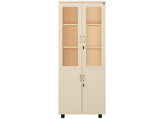 Tủ tài liệu 2 buồng gỗ Melamine, phía trên là 2 khoang cánh kính để tài liệu, phía dưới 2 cánh mở.