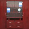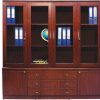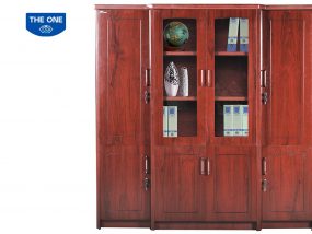 Tủ tài liệu gỗ sơn Pu gồm 4 buồng, hai buồng phía ngoài là khoang cánh dài treo áo. Hai buồng giữa phía trên là khoang cánh kính có đợt để tài liệu, phía dưới là 2 cánh gỗ mở.