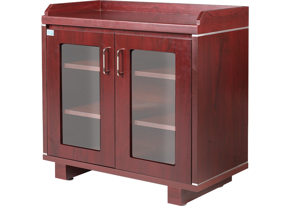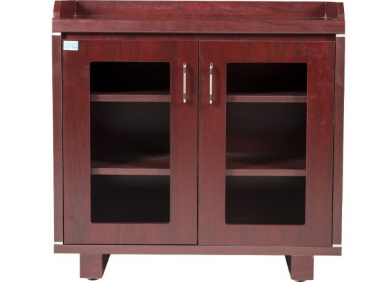 Tủ thấp để tài liệu gỗ sơn Pu gồm 2 buồng, có 2 khung cánh kính và có các đợt để đồ.