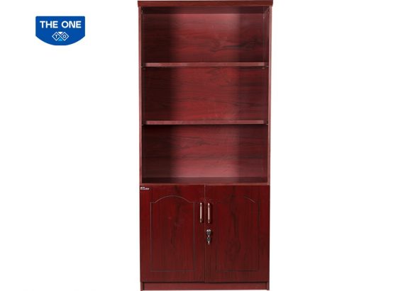 Tủ tài liệu gỗ sơn Pu, phía trên không cánh và có đợt để tài liệu. Phía dưới là 2 khoang cánh mở có các đợt để tài liệu.