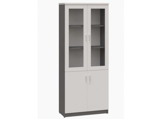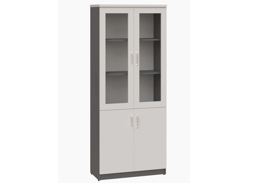 Tủ tài liệu 2 buồng gỗ Melamine, phía trên là 2 khoang cánh kính để tài liệu, phía dưới là hai khoang cánh mở.