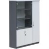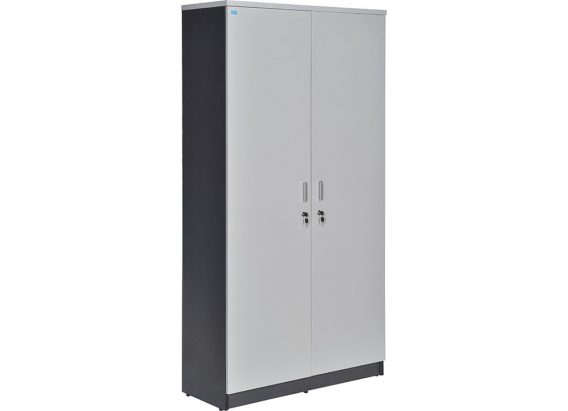 Tủ gỗ 2 cánh mở, bên trong có các ngăn để tài liệu.