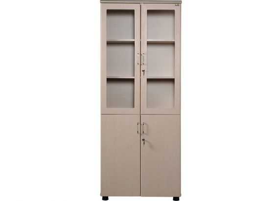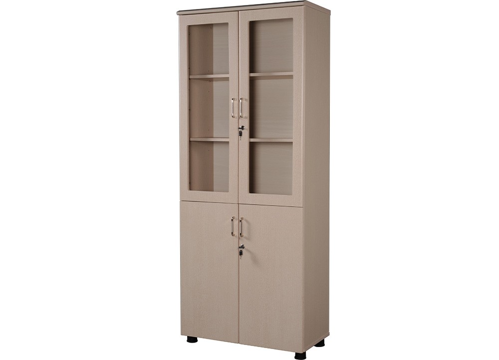 Tủ tài liệu 2 buồng, phía trên là 2 khoang cánh kính để tài liệu, phía dưới là hai khoang cánh mở.