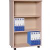 Tủ tài liệu thấp kết hợp giữa hai chất liệu là Laminate và Melamine, tủ có 2 khoang để file, khoang dưới có cánh mở.